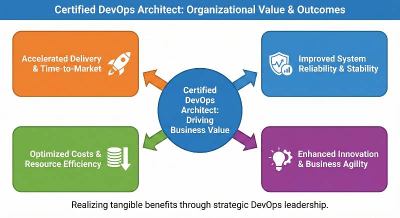 Certified DevOps Architect (CDA) adds strong value because it moves you from “doing DevOps tasks” to “designing DevOps systems.” Companies trust architects to plan CI/CD platforms, cloud automation, reliability, and scaling strategies. That means better responsibilities, higher impact work, and faster growth into senior roles.